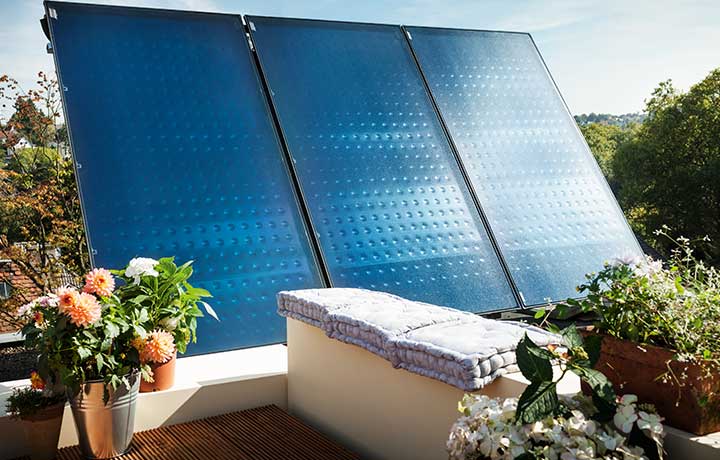 Solarkollektoren überzeugen durch Spitzentechnologie verborgen unter elegantem Design, das sich dezent in die Dachfläche oder die Fassade Ihres Hauses einfügt. Nutzen Sie die Sonnenstrahlung direkt, um Trinkwasser zu erwärmen! Bei komplexeren Anlagen wird zusätzlich Energie in den Pufferspeicher eingespeist, die damit zur Heizungsunterstützung nutzbar ist.